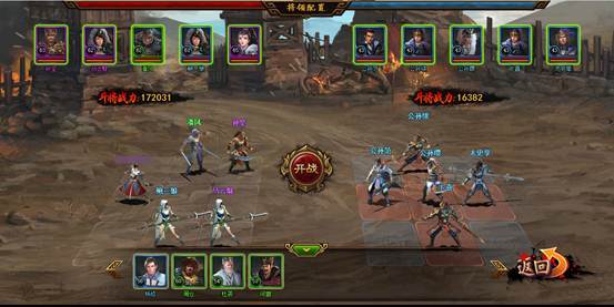 玩家可以布置5个将领出战,在第一个关卡出战的将领,在后续关卡不能进行替换。
