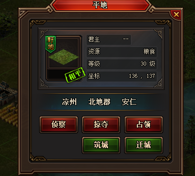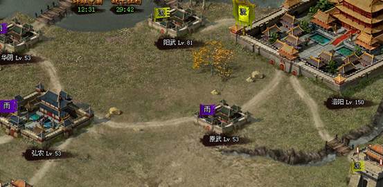 (2)除了玩家的城池还会存在npc的野城,如黄巾军的城池、汉献帝的城池等,一般也是占据一个格子。县城、郡城等大型城池会占据更多的格子;