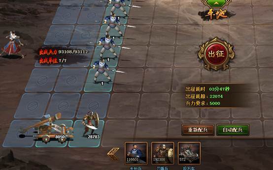 选择攻击之后,将会进入战斗军团配置界面,配置兵力后将对该格子进行攻击