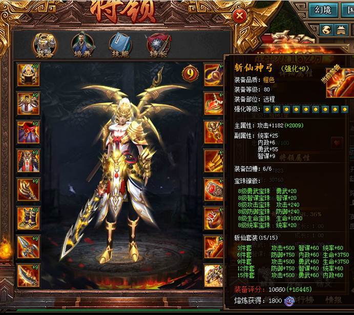 (1) 给将领穿上装备,可大幅度提升将领的战力;